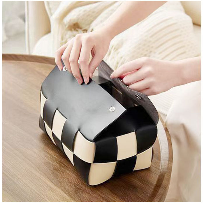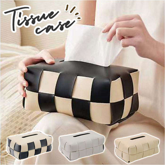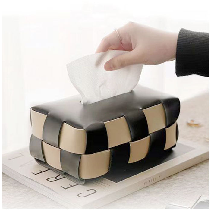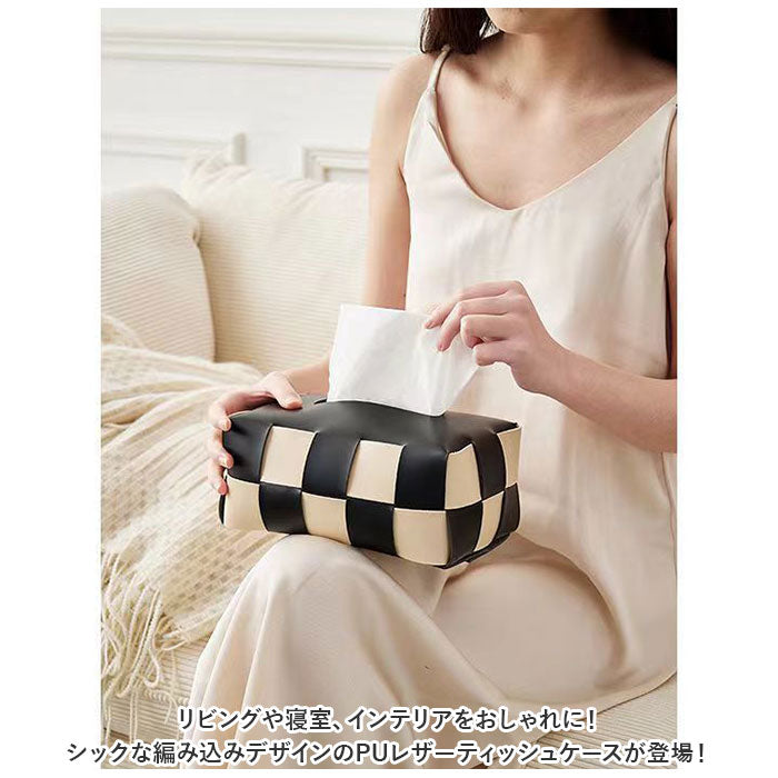 ・リビングや寝室、インテリアをおしゃれに!シックな編み込みデザインのPUレザーティッシュケースが登場!