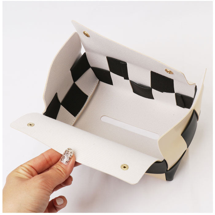 ティッシュケース レザー 市松模様 通販 ティッシュボックス ティッシュカバー ティッシュ ケース ボックス 撥水 高級感 皮革 上品 車 後部座席 デザイン リビング テーブル おしゃれ