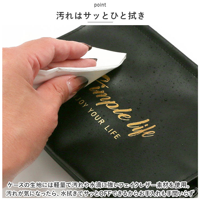 ・ケースの生地には軽量で汚れや水滴に強いフェイクレザー素材を使用。汚れが気になったら、水拭きでサッとOFFできるからお手入れも手間いらず。