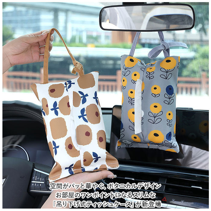 ・空間がパッと華やぐ、ボタニカルデザイン。お部屋のワンポイントになるスリムな「吊り下げ式ティッシュケース」が新登場。