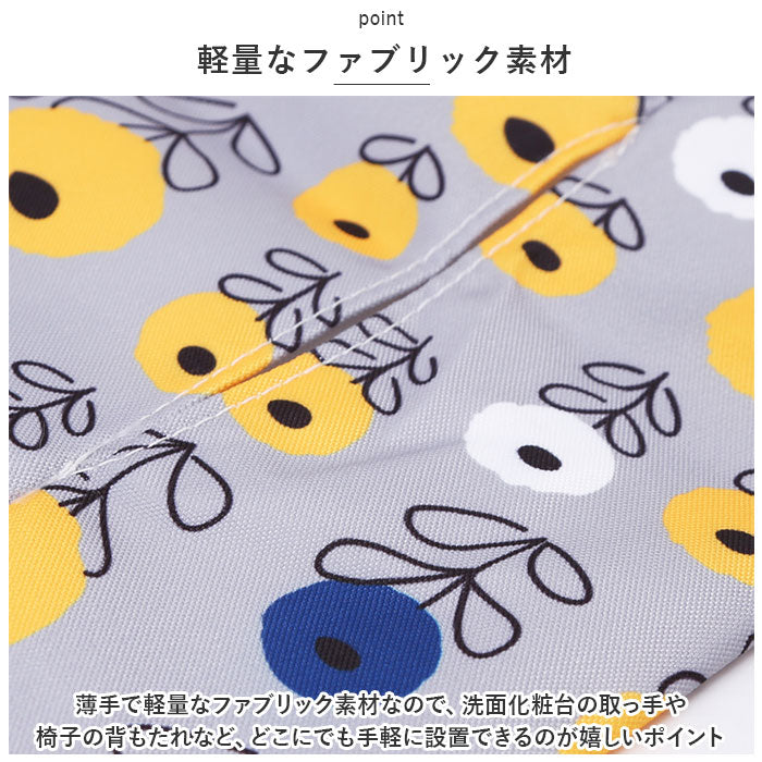 ・薄手で軽量なファブリック素材なので、洗面化粧台の取っ手や椅子の背もたれなど、どこにでも手軽に設置できるのが嬉しいポイント。