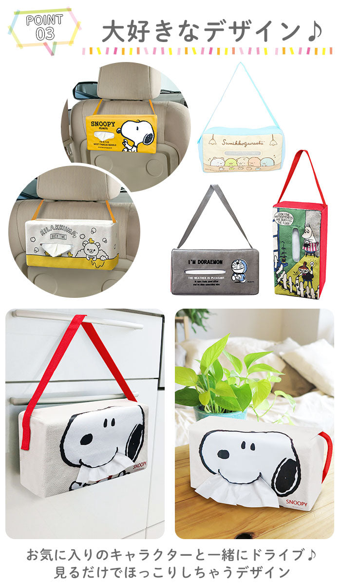 ティッシュケース 車 キャラクター 通販 おしゃれ 吊り下げ ティッシュカバー ティッシュホルダー ティッシュ ケース カバー ホルダー スヌーピー リラックマ 壁掛け ボックスティッシュ
