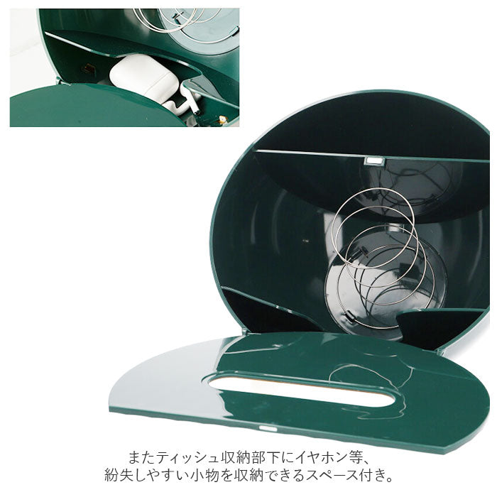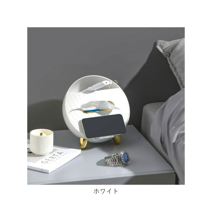 ・またティッシュ収納部下にイヤホン等、紛失しやすい小物を収納できるスペース付き。