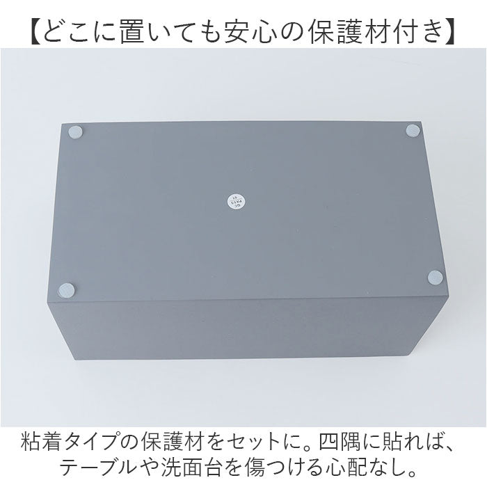 ・粘着タイプの保護材をセットに。四隅に貼れば、テーブルや洗面台を傷つける心配なし。