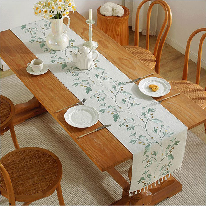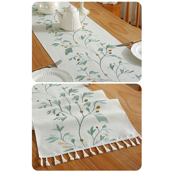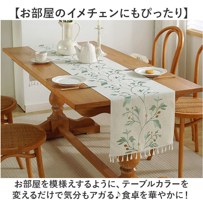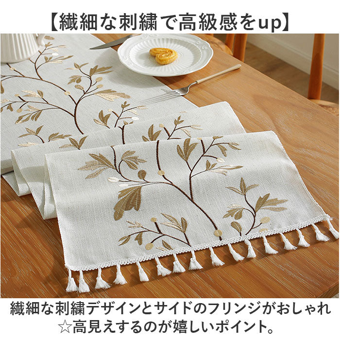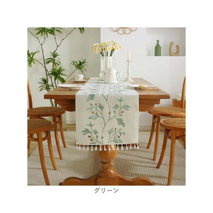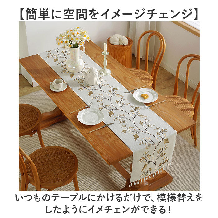 テーブルランナー オシャレ 通販 テーブルセンタークロス おしゃれ テーブルマット センター ベッドランナー テーブル 机 食卓 マット クロス 装飾 飾り 防汚 防塵 刺繍 タッセル リーフ