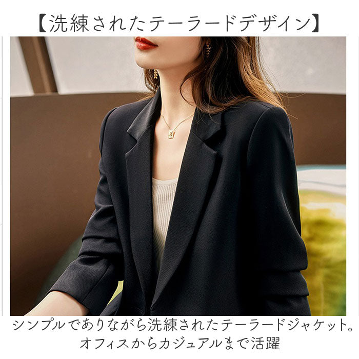 ・シンプルでありながら洗練されたテーラードジャケット。オフィスからカジュアルまで活躍