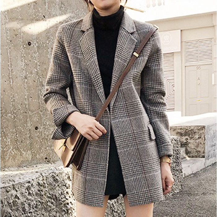 ・グレンチェック柄が今時っぽく大人カジュアルなテーラードジャケット。