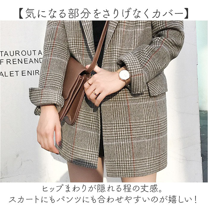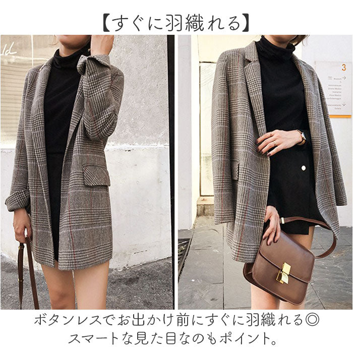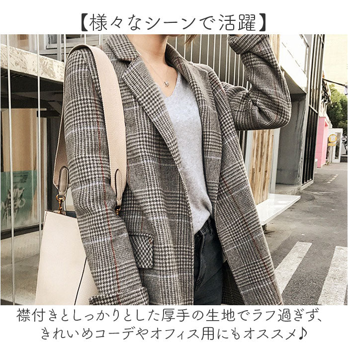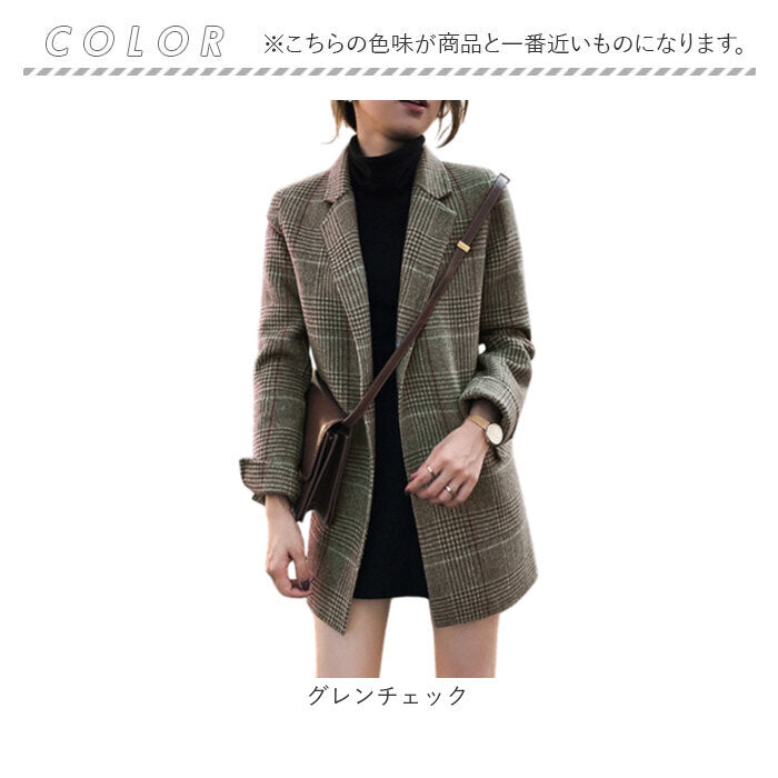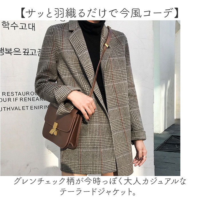 テーラードジャケット レディース 通販 テーラード ジャケット アウター コート 上着 長袖 羽織り グレンチェック オフィスカジュアル ビジネスカジュアル シンプル おしゃれ 通勤 秋冬