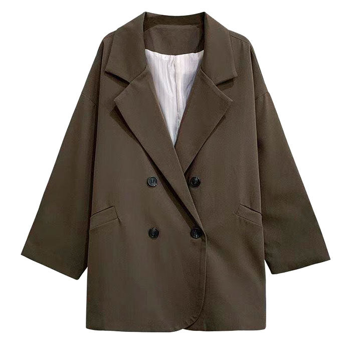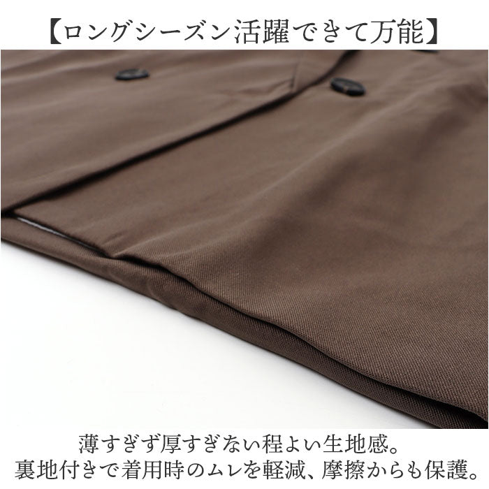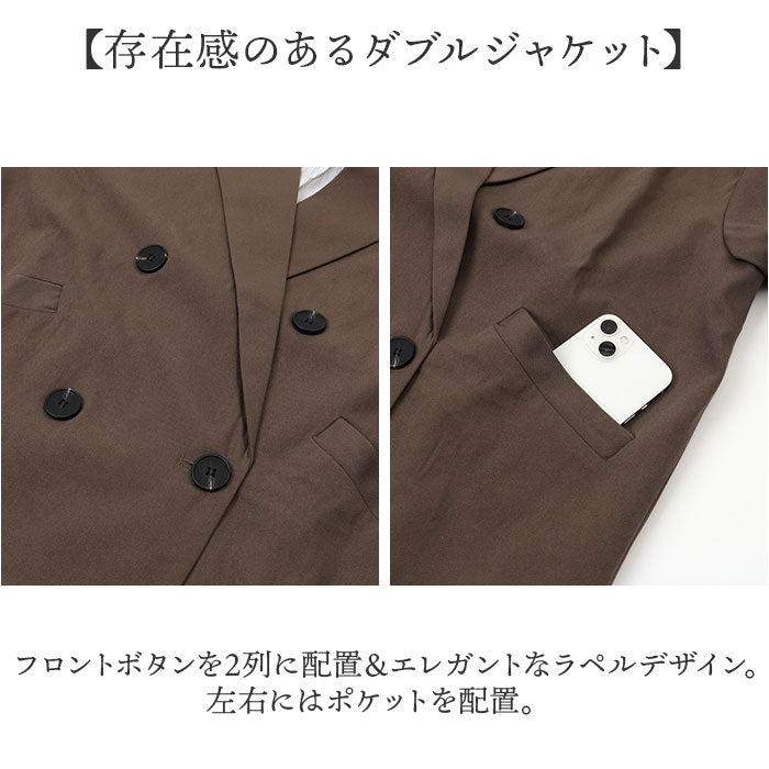 ・フロントボタンを2列に配置&エレガントなラペルデザイン。左右にはポケットを配置。