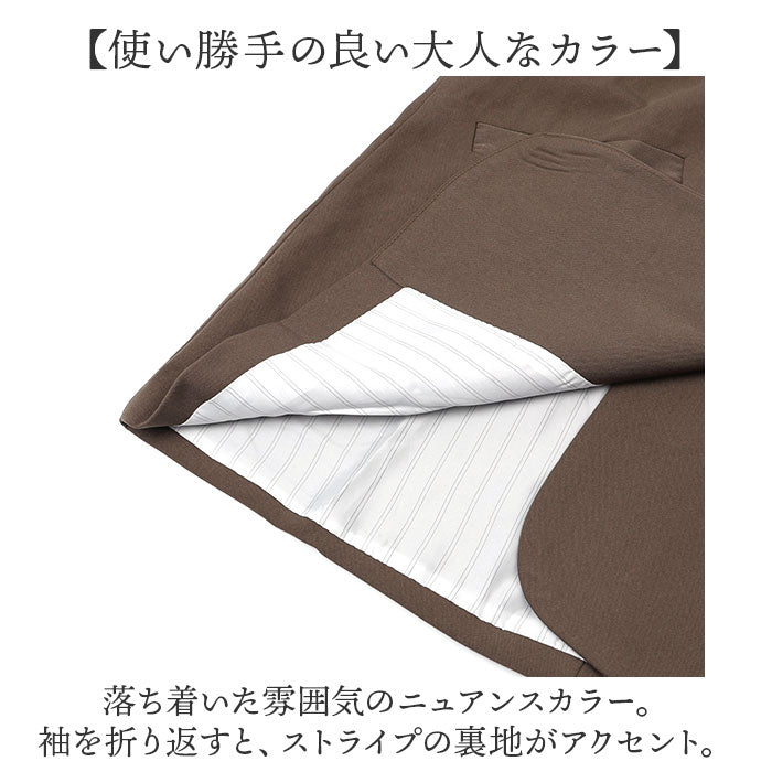 ・落ち着いた雰囲気のニュアンスカラー。袖を折り返すと、ストライプの裏地がアクセント。