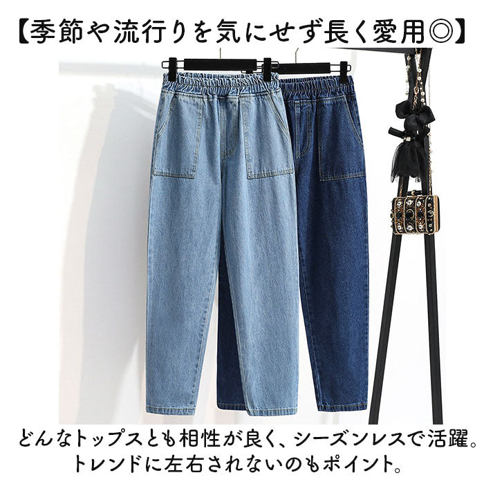 デニムパンツ レディース ウエストゴム 通販 ストレートパンツ ロングパンツ 長ズボン ズボン テーパードパンツ デニム ロング レディースパンツ テーパード ゆったり 体型カバー ゴム式