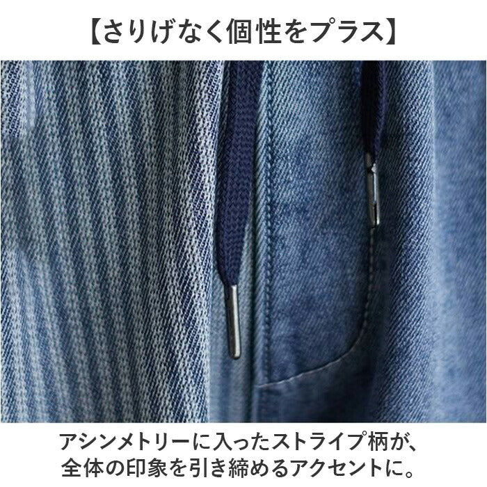 ・締め付けゼロで動きやすさ◎「デニム サルエルパンツ ストライプ柄」が登場。