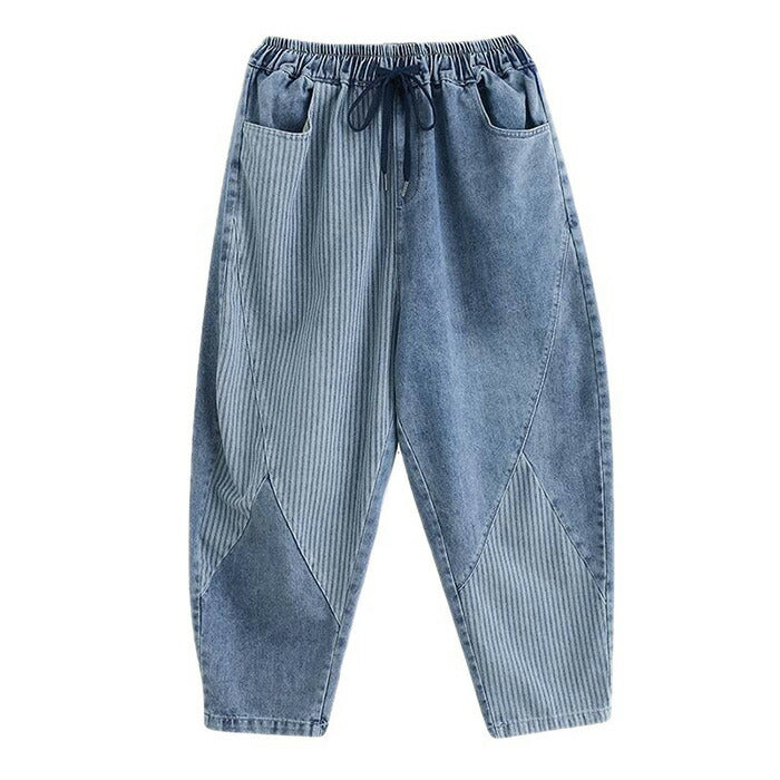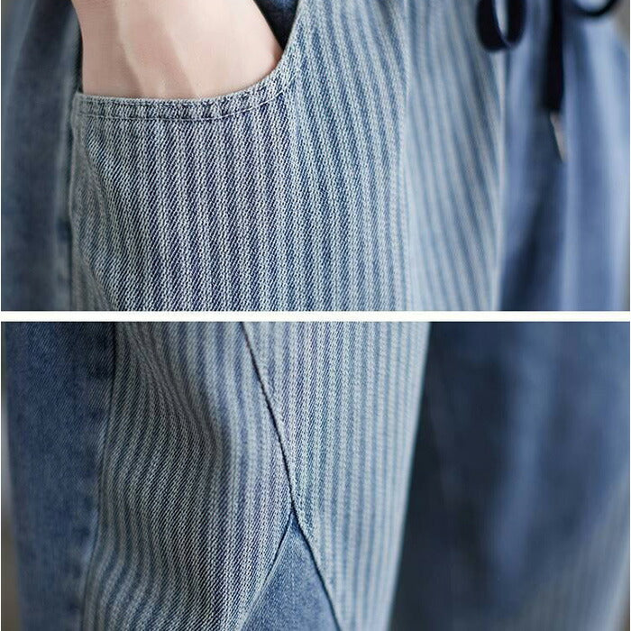 デニムパンツ レディース ストライプ 通販 サルエルパンツ ズボン パンツ ジーパン ジーンズ デニム サルエル レディースパンツ 9分丈 九分丈 ポケット ストライプ柄 ウエストゴム