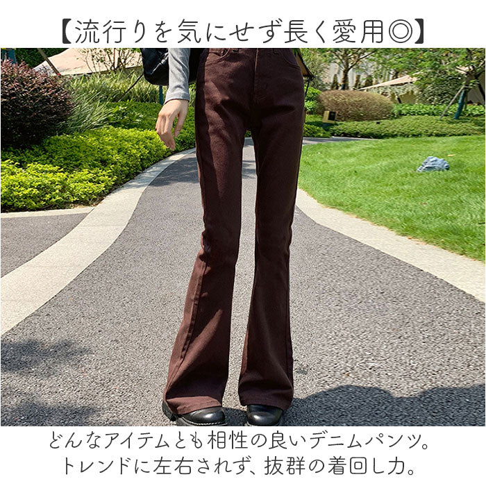 デニムパンツ レディース 通販 ジーンズ ジーパン ストレッチパンツ ブーツカットパンツ パンツ 長ズボン ロングパンツ ブーツカット ストレッチ 伸縮性 薄手 スラット ハイウエスト