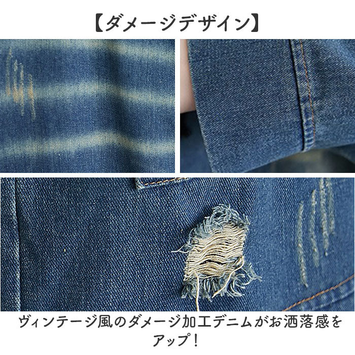 ・ ヴィンテージ風のダメージ加工デニムがお洒落感をアップ!