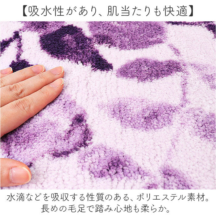 ・水滴などを吸収する性質のある、ポリエステル素材。長めの毛足で踏み心地も柔らか。