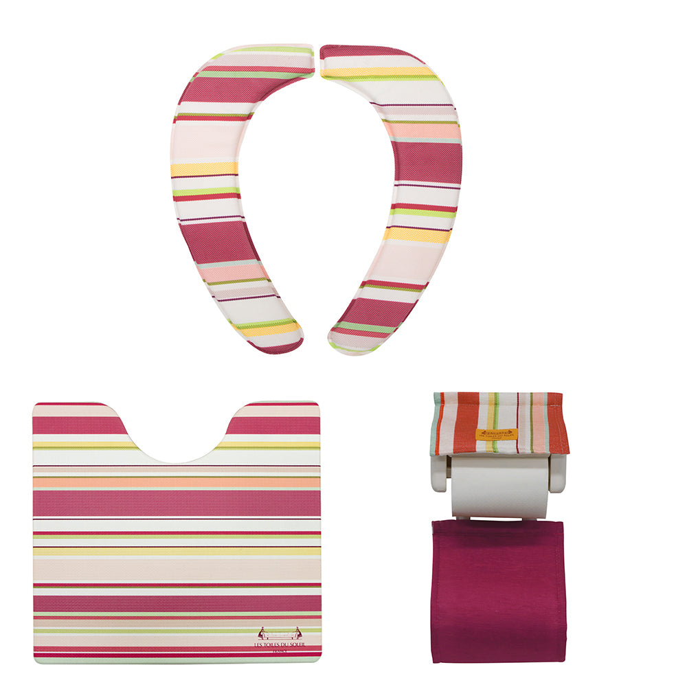 ・「レ トワール デュ ソレイユ」の格調高いストライプ柄を用いたファブリックシリーズから、「トイレ3点セット 足元マット&便座クッション&ペーパーホルダー」が発売。