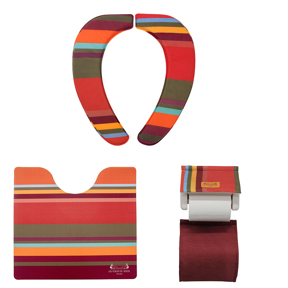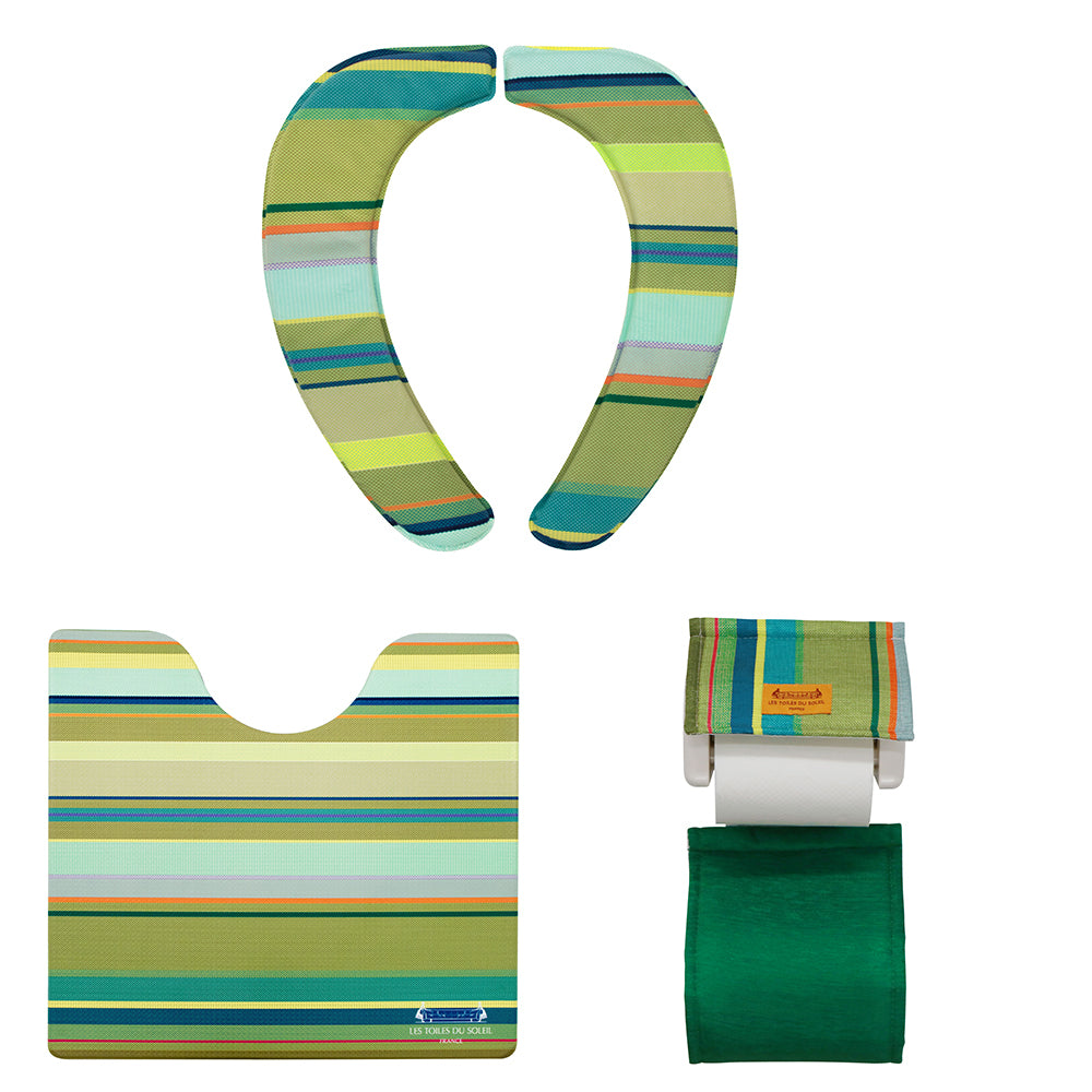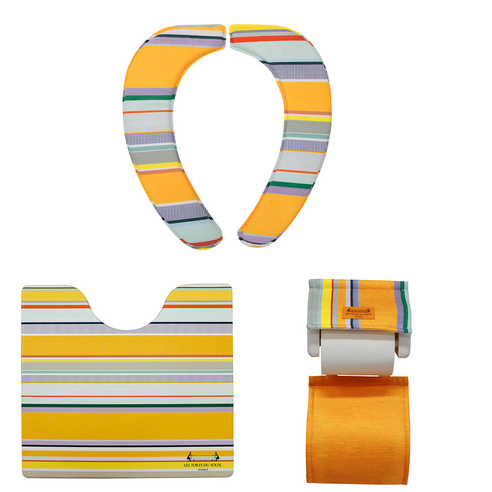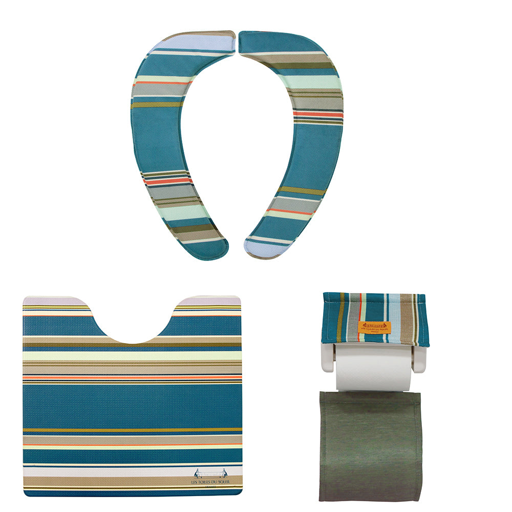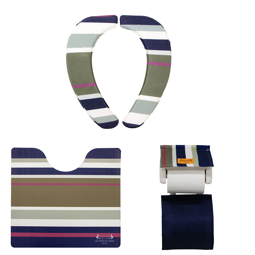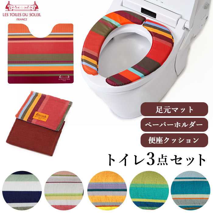 トイレマット セット おしゃれ 通販 トイレ3点セット 足元マット 便座クッション 便座シート トイレットペーパーホルダー インテリア トイレファブリック 新築祝い ギフト お手入れ簡単 防カビ 防炎 抗菌 防臭 撥水 はっ水 ストライプ PVC 塩化ビニル樹脂 フランス