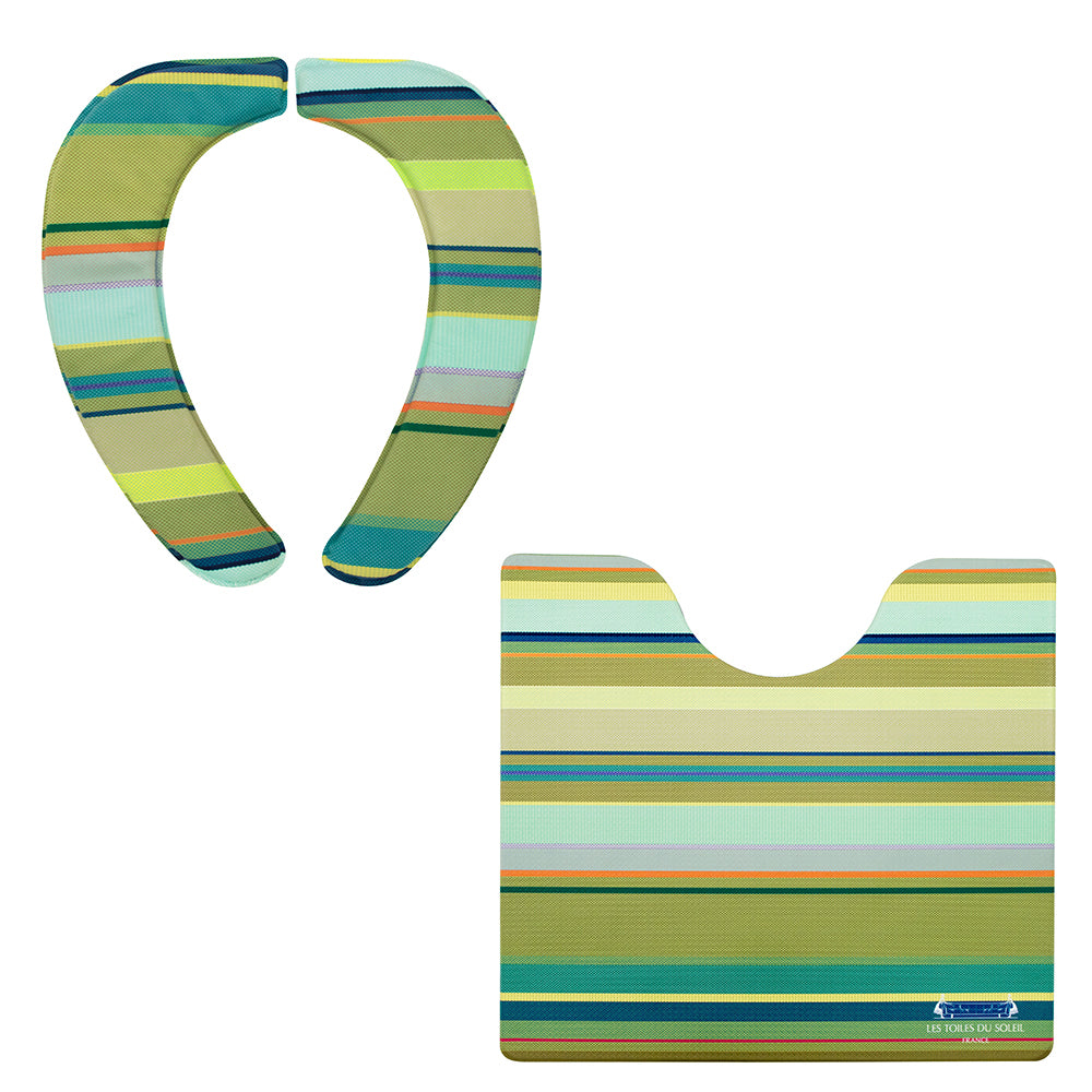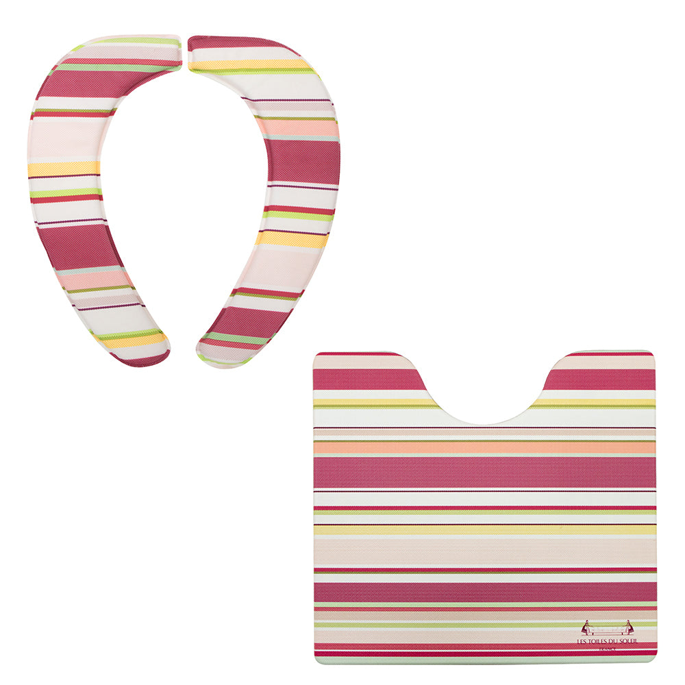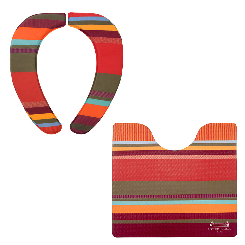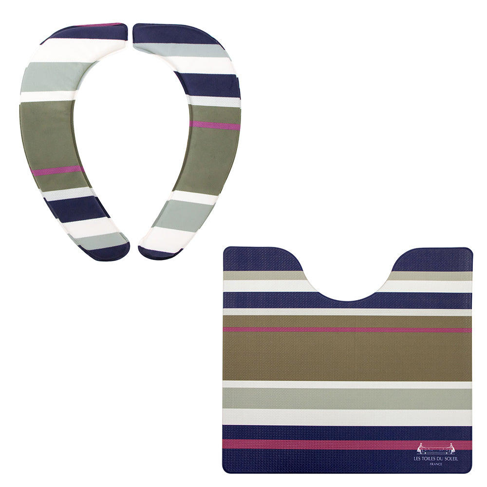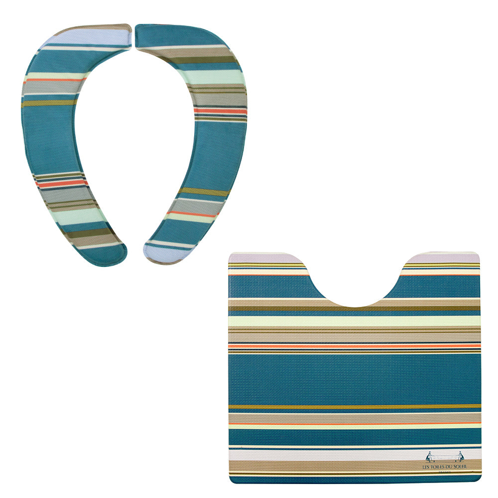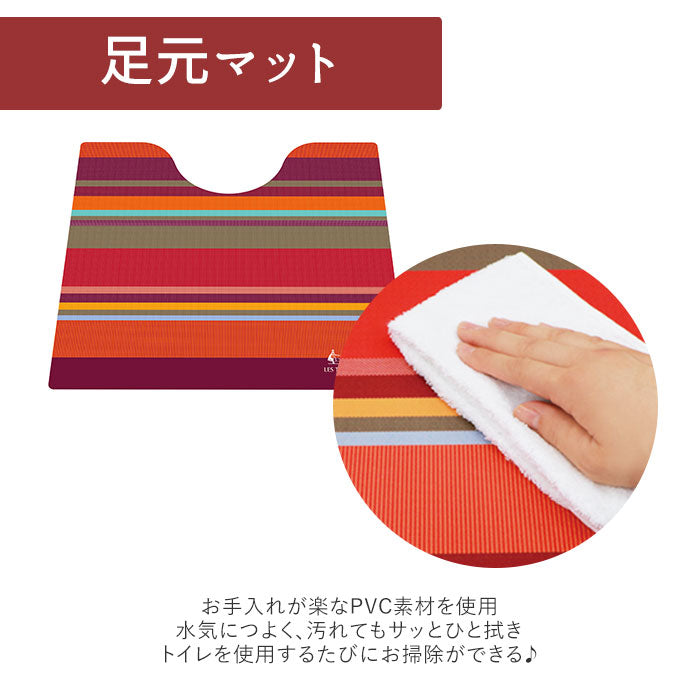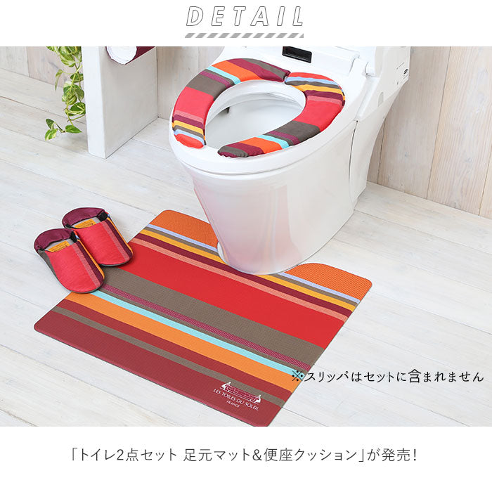 トイレマット セット おしゃれ 通販 トイレ2点セット 足元マット 便座クッション 厚手 インテリア トイレファブリック 新築祝い ギフト お手入れ簡単 防カビ 防炎 抗菌 防臭 撥水 はっ水 ストライプ PVC 塩化ビニル樹脂 フランス ブランド レトワール
