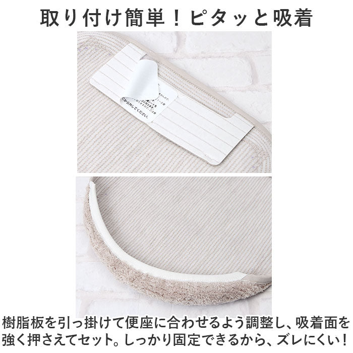 ・樹脂板を引っ掛けて便座に合わせるよう調整し、吸着面を強く押さえてセット。しっかり固定できるから、ズレにくい!