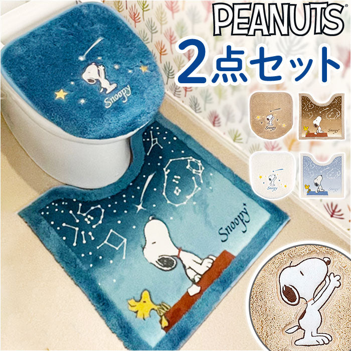 トイレマット フタカバー セット 通販 星空スヌーピー スヌーピー グッズ 2点 キャラクター トイレ蓋カバー トイレ マット トイレふたカバー 貼るだけ 便所マット おしゃれ PEANUTS