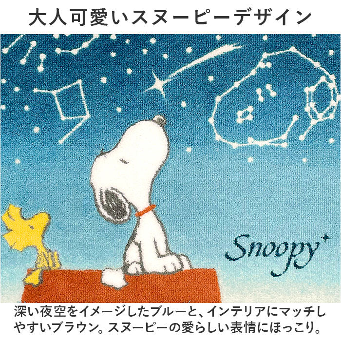 ・深い夜空をイメージしたブルーと、インテリアにマッチしやすいブラウン。スヌーピーの愛らしい表情にほっこり。
