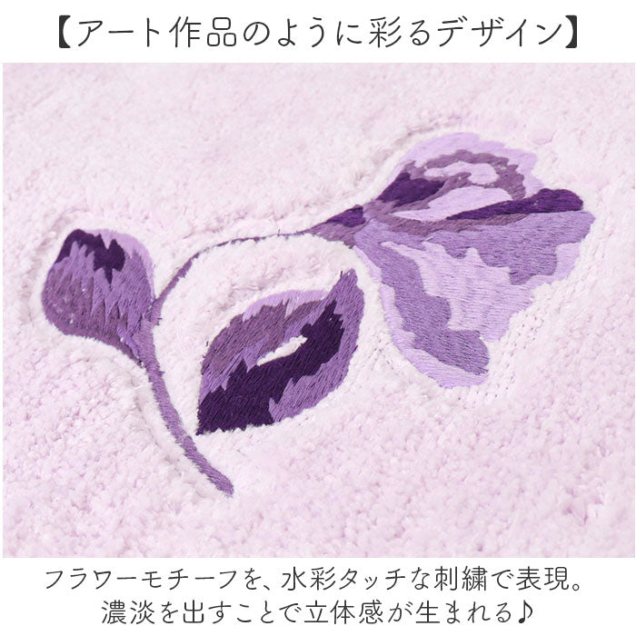 ・フラワーモチーフを、水彩タッチな刺繍で表現。濃淡を出すことで立体感が生まれる♪