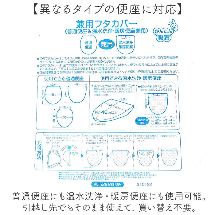 ・普通便座にも温水洗浄・暖房便座にも使用可能。引越し先でもそのまま使えて、買い替え不要。