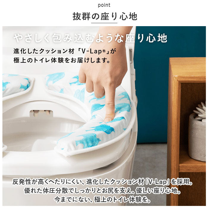 ・反発性が高くへたりにくい、進化したクッション材「V-Lap」を採用。優れた体圧分散でしっかりとお尻を支え、優しい座り心地。今までにない、極上のトイレ体験を。