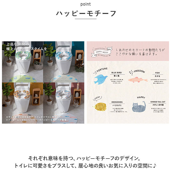 トイレ 便座シート 通販 マシュマロ便座クッション ハッピーモチーフ 便座クッション トイレ便座カバー 便座カバー 貼る 洗える 洗濯可 おしゃれ かわいい トイレタリー 日本製 雑貨
