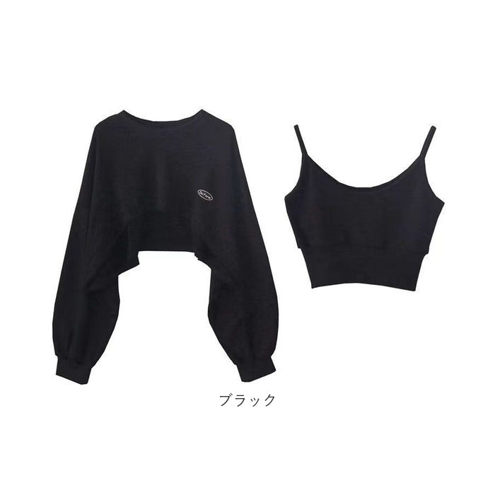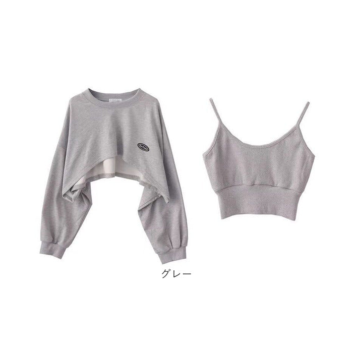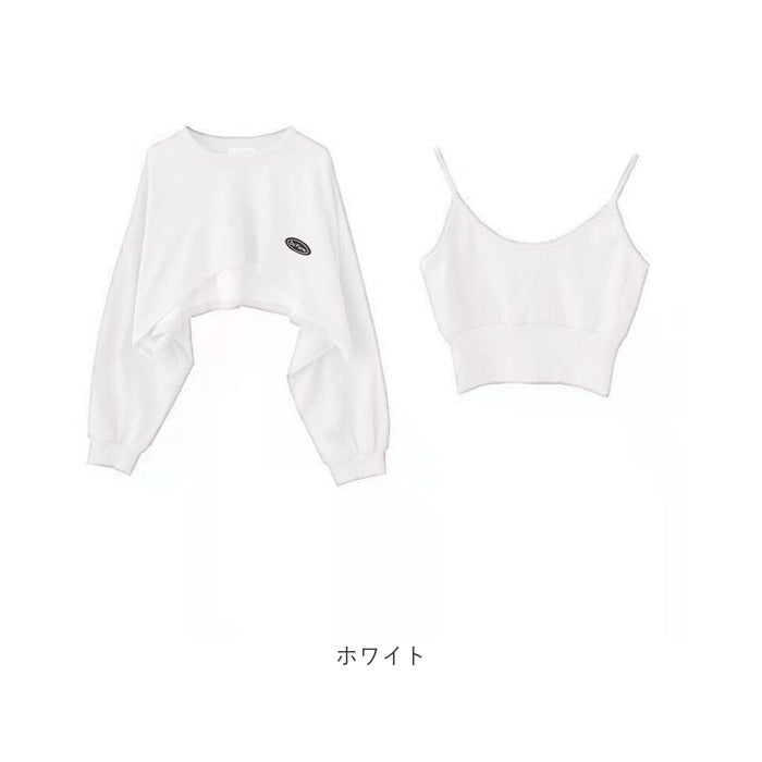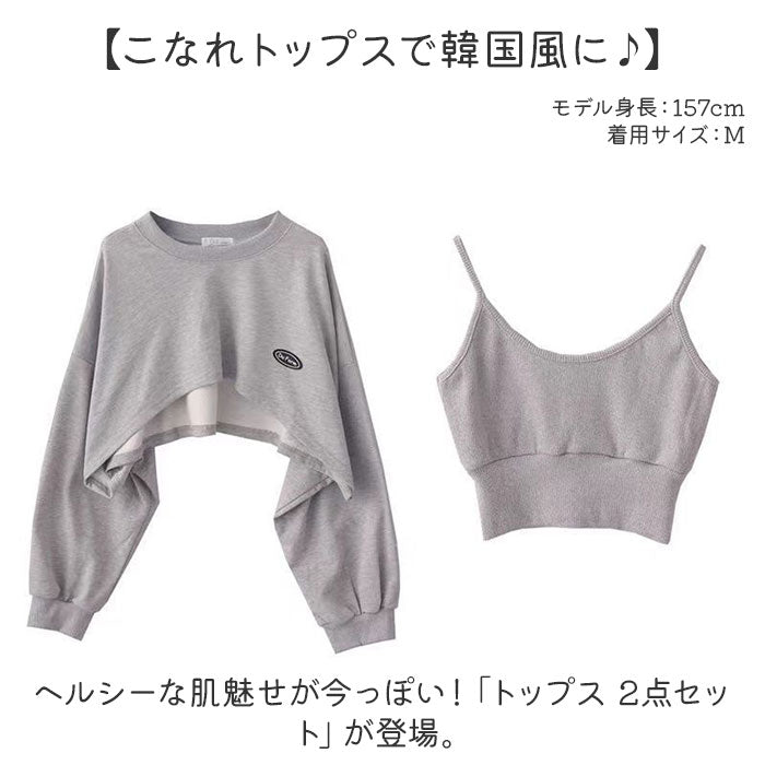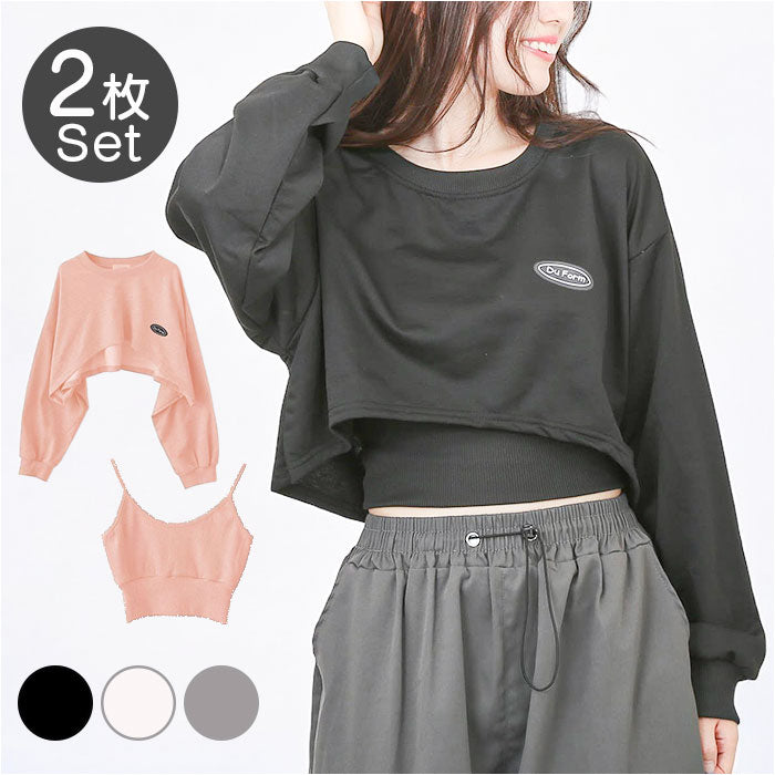 トップス キャミソール ショート丈 レディース 長袖 通販 Tシャツ tシャツ ロンT カットソー 長袖Tシャツ 長袖シャツ オーバーサイズ 2点セット ショート ゆったり 短め かわいい 可愛い