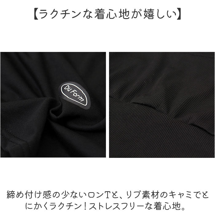 ・締め付け感の少ないロンTと、リブ素材のキャミでとにかくラクチン!ストレスフリーな着心地。