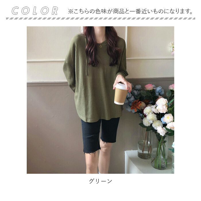 ・身幅に余裕を持たせた、締めつけ感のないシルエット。裾元はふわっと揺れるラウンドデザインでボディラインを拾いにくく、気になる部分もカバー。
