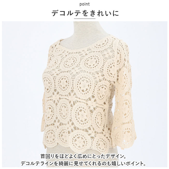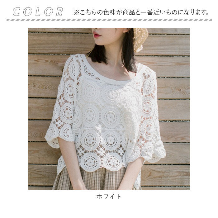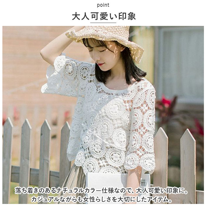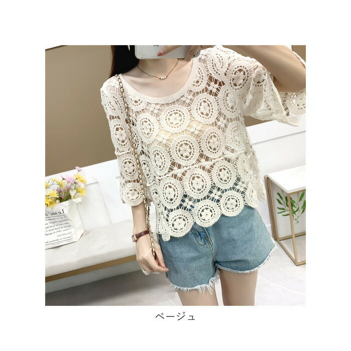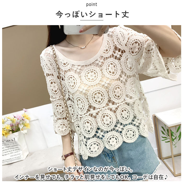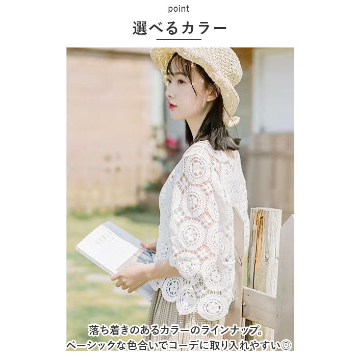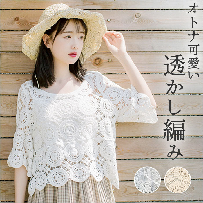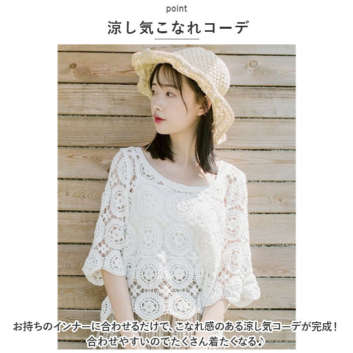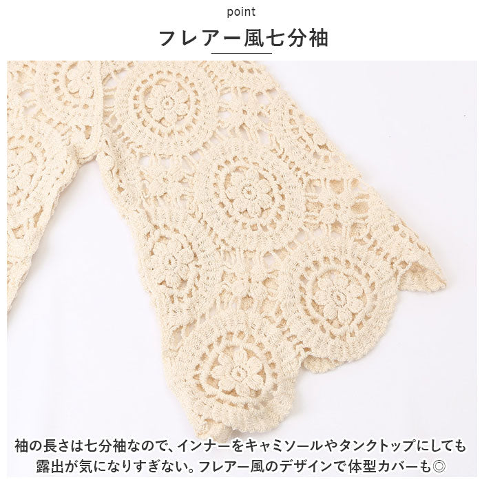 トップス 透かし編み レディース 通販 羽織り 重ね着 レイヤード 七分丈 総柄 ショート丈 透かし彫り 透かし編み ゆったり カジュアル 体型カバー 春 夏 おしゃれ かわいい
