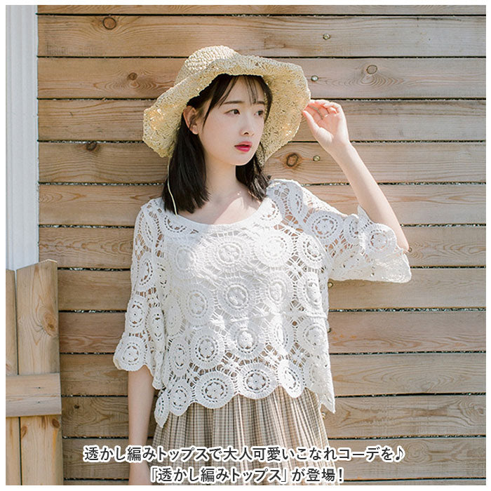 ・透かし編みトップスで大人可愛いこなれコーデを♪「透かし編みトップス」が登場!