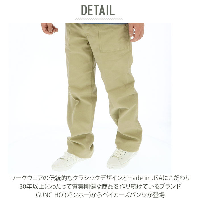 ・ワークウェアの伝統的なクラシックデザインとmade in USAにこだわり、30年以上にわたって質実剛健な商品を作り続けているブランド、GUNG HO (ガンホー)からベイカーズパンツが登場。
