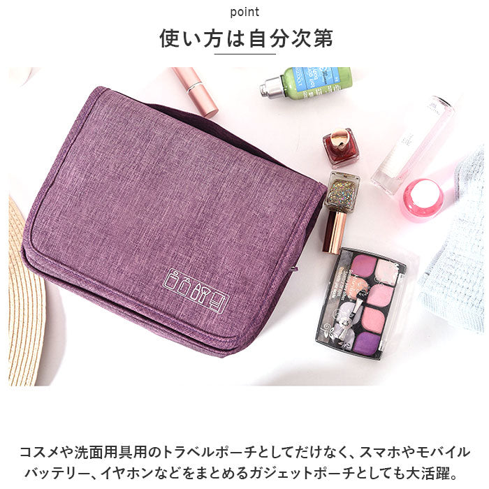 ・コスメや洗面用具用のトラベルポーチとしてだけなく、スマホやモバイルバッテリー、イヤホンなどをまとめるガジェットポーチとしても大活躍。
