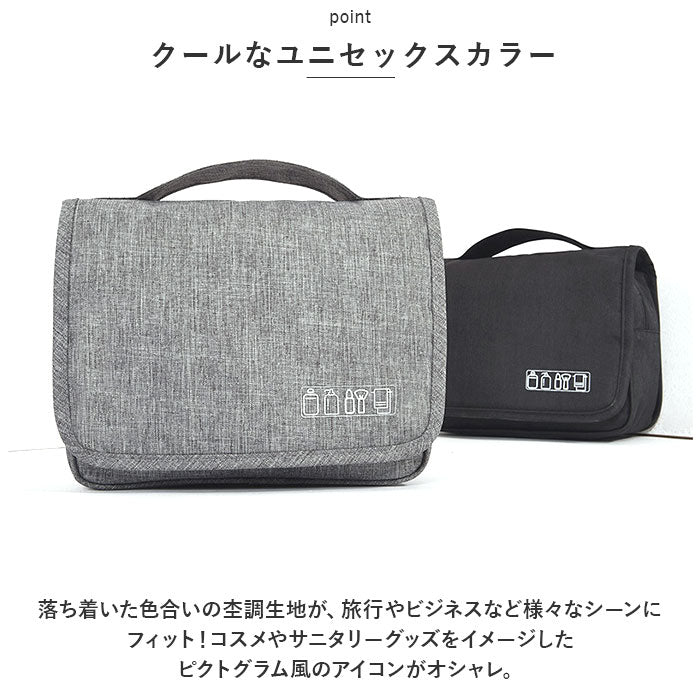 ・落ち着いた色合いの杢調生地が、旅行やビジネスなど様々なシーンにフィット!コスメやサニタリーグッズをイメージしたピクトグラム風のアイコンがオシャレ。