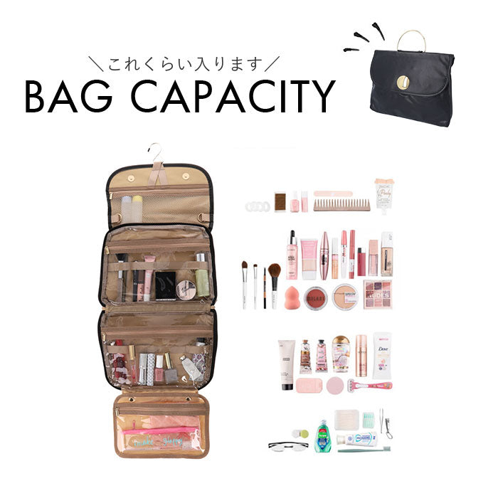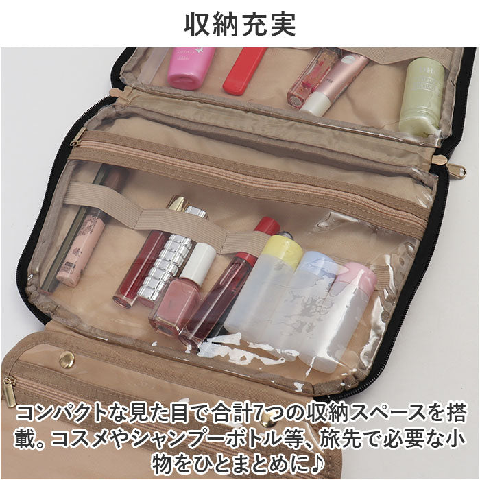 ・コンパクトな見た目で合計7つの収納スペースを搭載。コスメやシャンプーボトル等、旅先で必要な小物をひとまとめに♪
