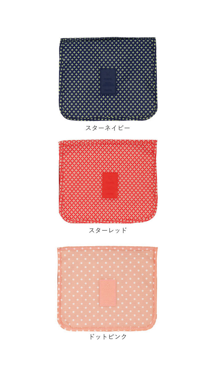 ・洗面用品やコスメなどの小物を整理して収納できる、コンパクトなポーチ。フック付きなので、旅先のホテルや旅館の洗面台に吊るせば、必要な小物が取り出しやすい!