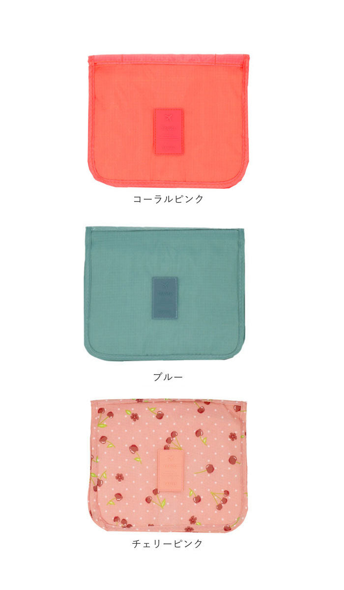 ・フックに掛けて吊るして使える!便利なトラベルポーチ。