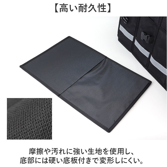 ・摩擦や汚れに強い生地を使用し、底部には硬い底板付きで変形しにくい。