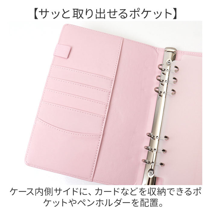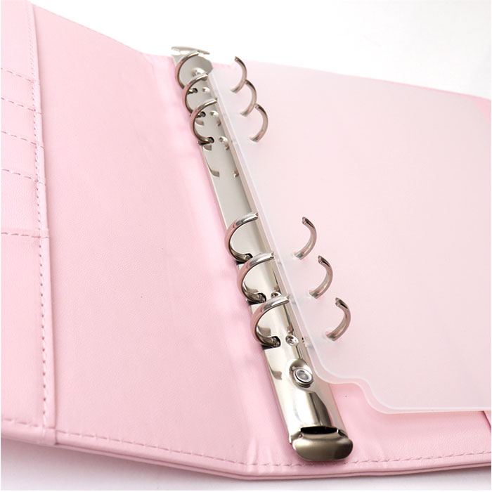 ・内側中央に6つ穴を配置したバインダー。付属のリフィルをカチッとひとまとめ。