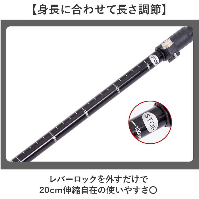 【身長に合わせて長さ調節】レバーロックを外すだけで20cm伸縮自在の使いやすさ〇