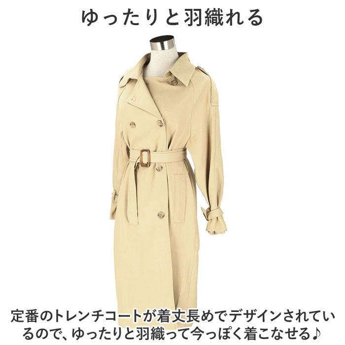 ・定番のトレンチコートが着丈長めでデザインされているので、ゆったりと羽織って今っぽく着こなせる♪