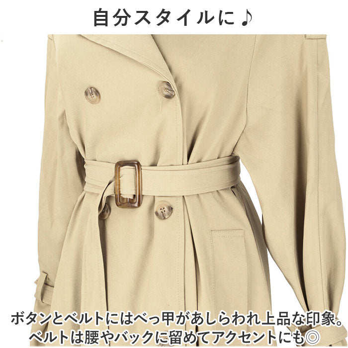 ・ボタンとベルトにはべっ甲があしらわれ上品な印象。ベルトは腰やバックに留めてアクセントにも◎
