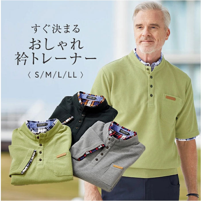 トレーナー メンズ 通販 半袖トレーナー 衿トレーナー 半袖 男性 紳士 トップス カジュアル シンプル 無地 おしゃれ 重ね着風 快適 通気性 メンズファッション 普段着 大人 紳士服 敬老