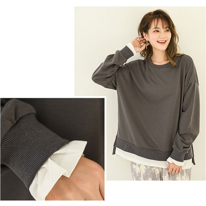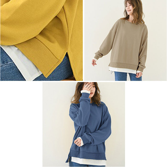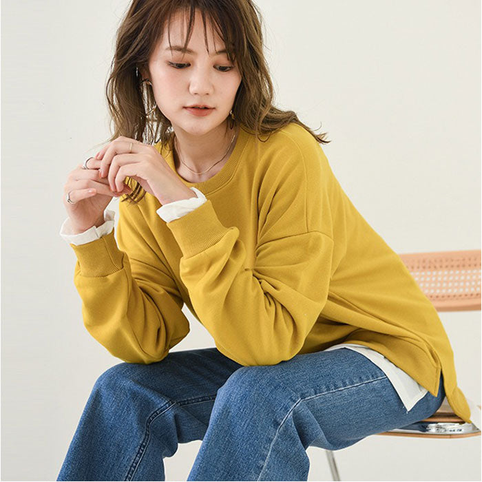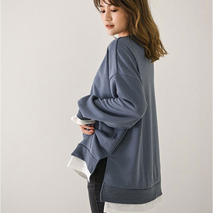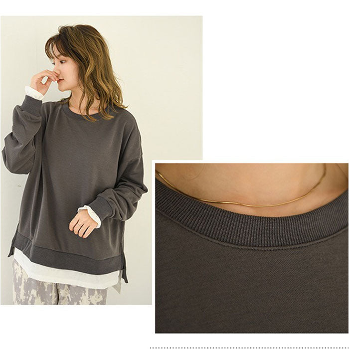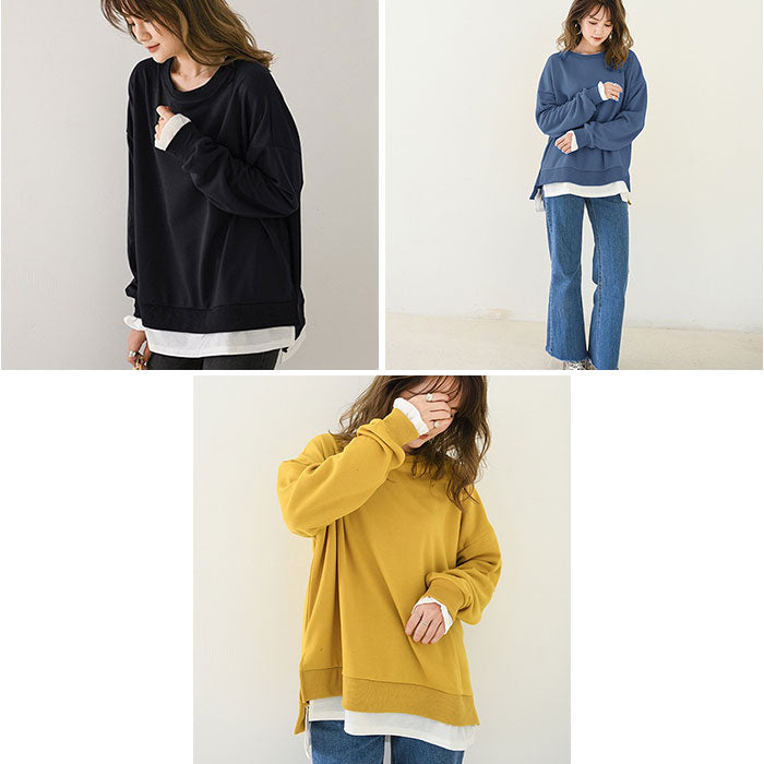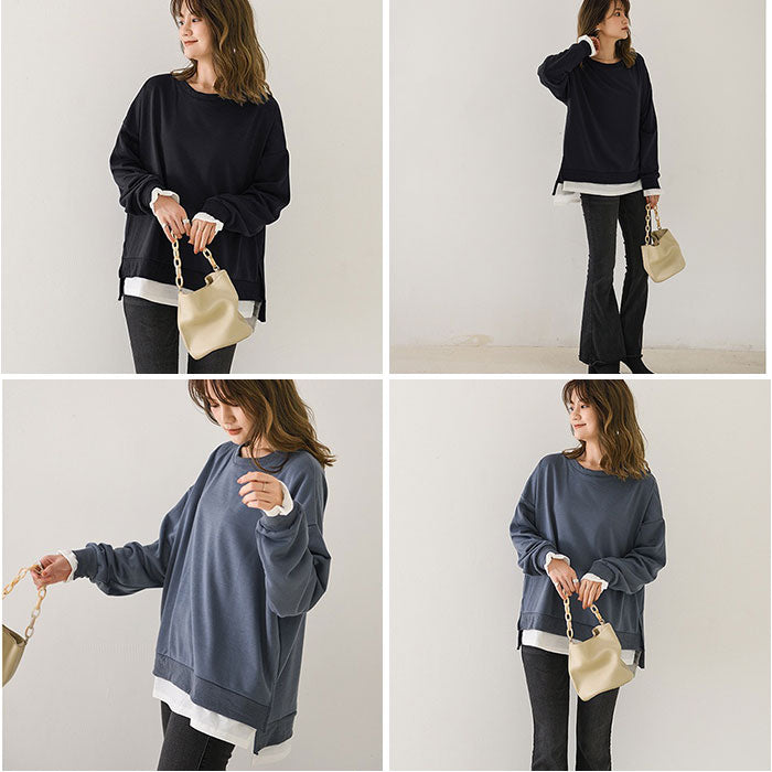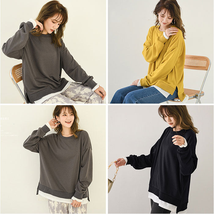 トレーナー 長袖 レディース 通販 無地 カットソー スウェット レイヤード風 ゆったり 体型カバー オーバーサイズ ビッグシルエット おしゃれ かわいい シンプル カジュアル トップス