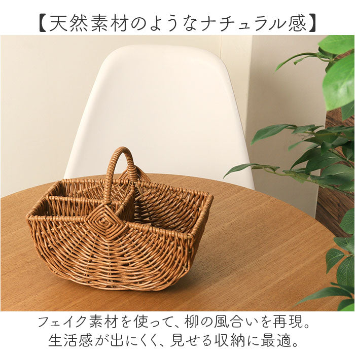 ・フェイク素材を使って、柳の風合いを再現。生活感が出にくく、見せる収納に最適。