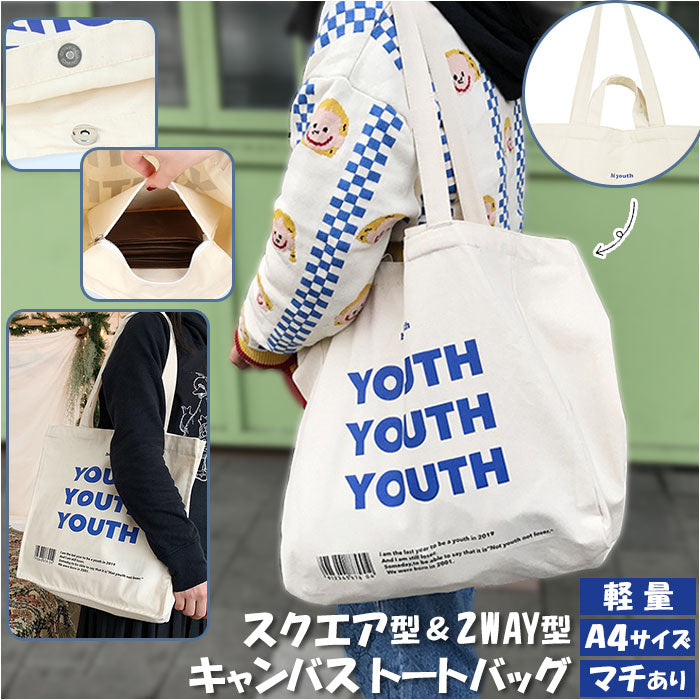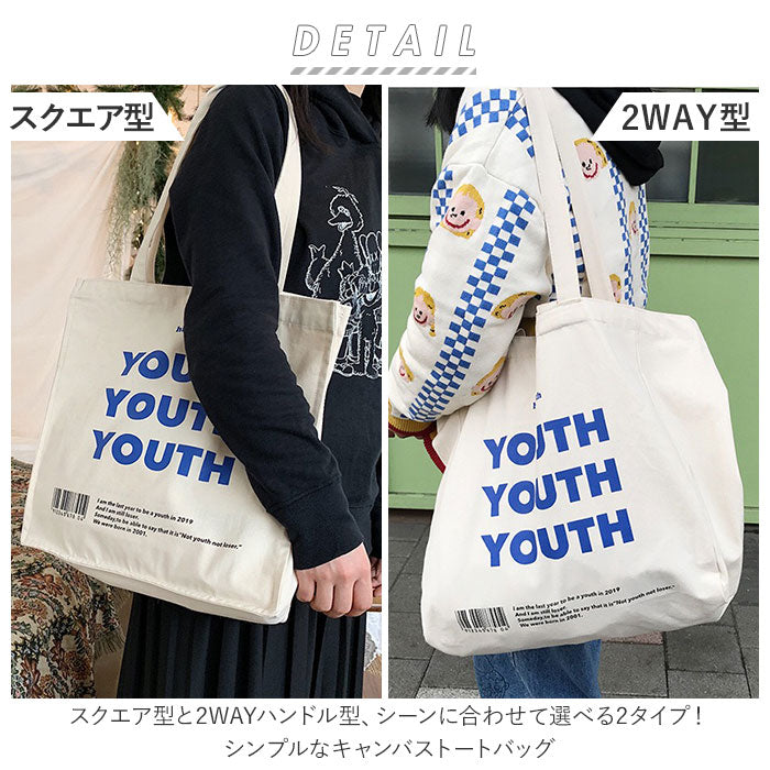 トートバッグ キャンバス 通販 2way ショルダーバッグ ショルダー 肩掛け キャンパストート キャンパスバッグ キャンパスバック 手提げ ベジバッグ サブバック 帆布 ロゴ YOUTH youth